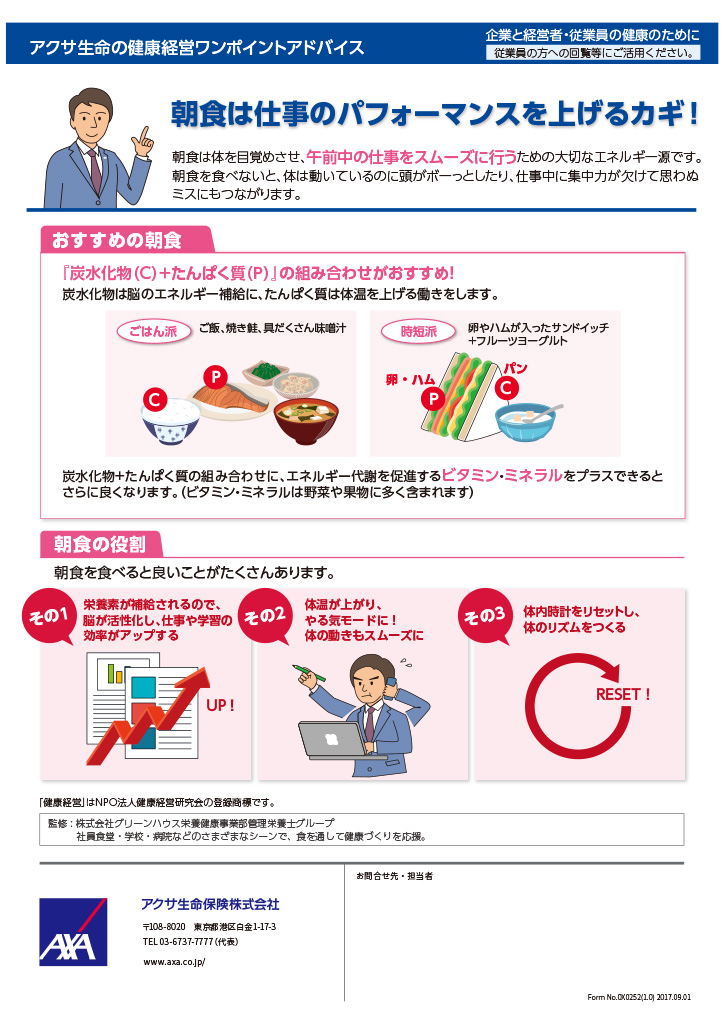 その取り組みの一環としてアクサ生命より健康経営のアドバイスを受け社内に周知しています。