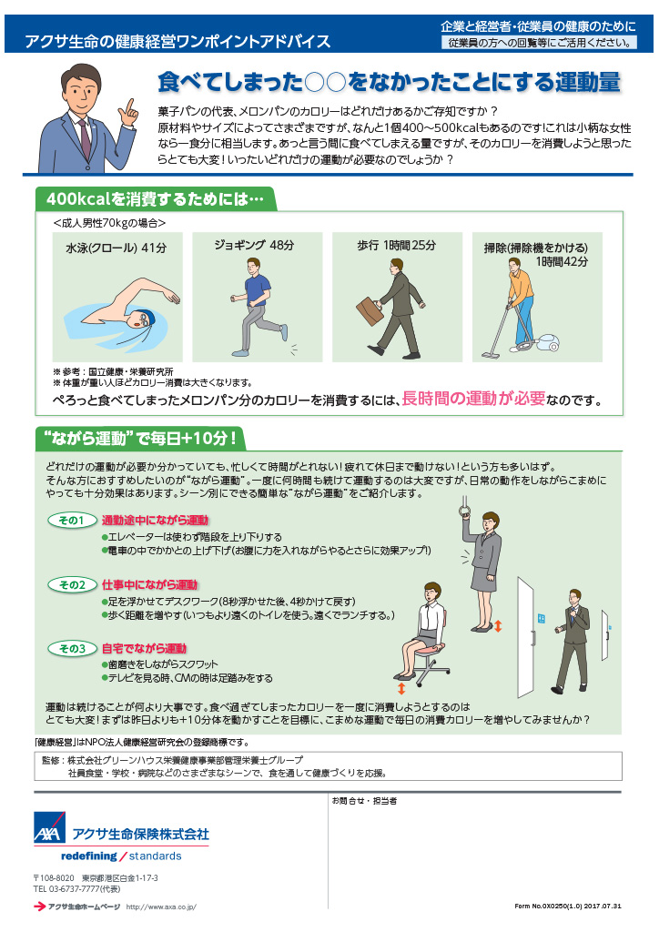 その取り組みの一環としてアクサ生命より健康経営のアドバイスを受け社内に周知しています。