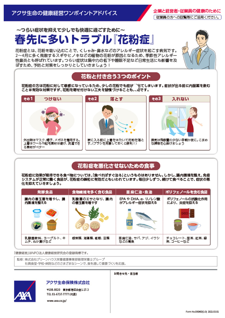 3月テーマは『”春先に多いトラブルの花粉症”』です。